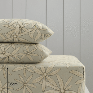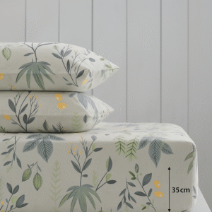 100% pure cotton with elegant leaf print 300TC premium softness – breathable and durable King, Super King & Twin sizes available 23cm deep pocket – fits standard and slim mattresses…