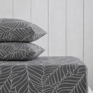 Grey Leaves 400TC Super king Size Cotton Fitted Bedsheets, 4 Pillow Covers