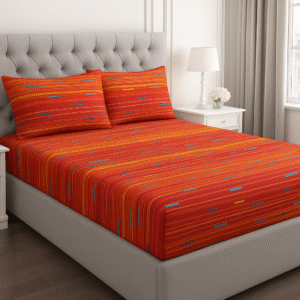 Sleep in comfort with our Queen Size Cotton Fitted Bedsheet. Made from 100% pure cotton, it’s soft, breathable, and stays secure with elasticated corners. Includes matching pillow covers.