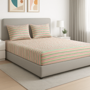 Queen Size Cotton Fitted Bedsheet with Pillow Covers