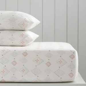 Tea Pink Feather 100% Cotton Fitted Sheet Set – 450TC