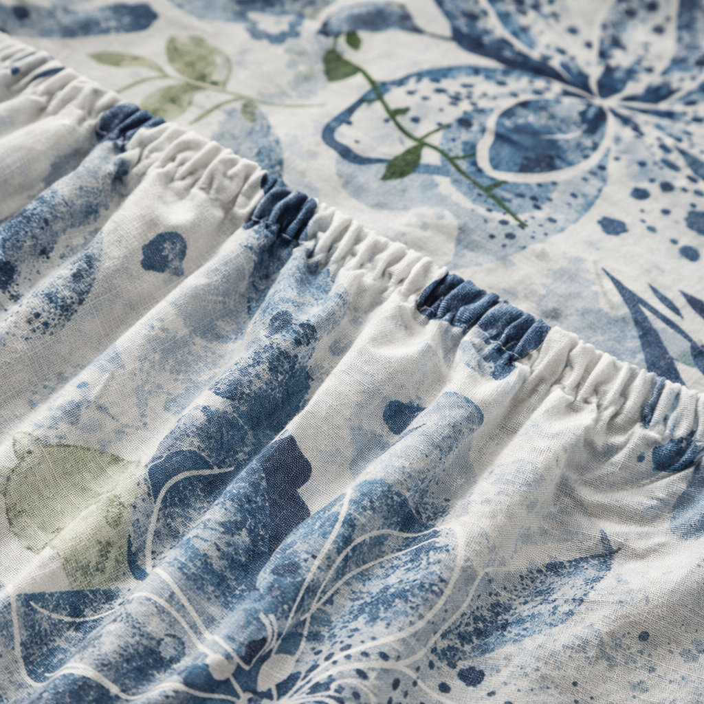 100% Pure Cotton Fitted Bedsheet Set – Blue Floral 350TC