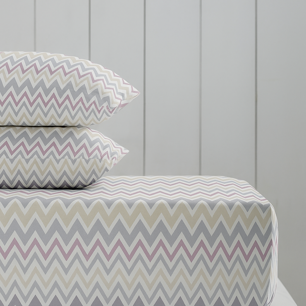 Refresh your bedroom with the sleek, contemporary style of the Zigzag Waves 500TC Cotton Fitted Bedsheet from JustCoton. Featuring a bold zigzag wave pattern and crafted from 100% pure cotton, this fitted bedsheet combines modern design with breathable comfort and hotel-like softness.