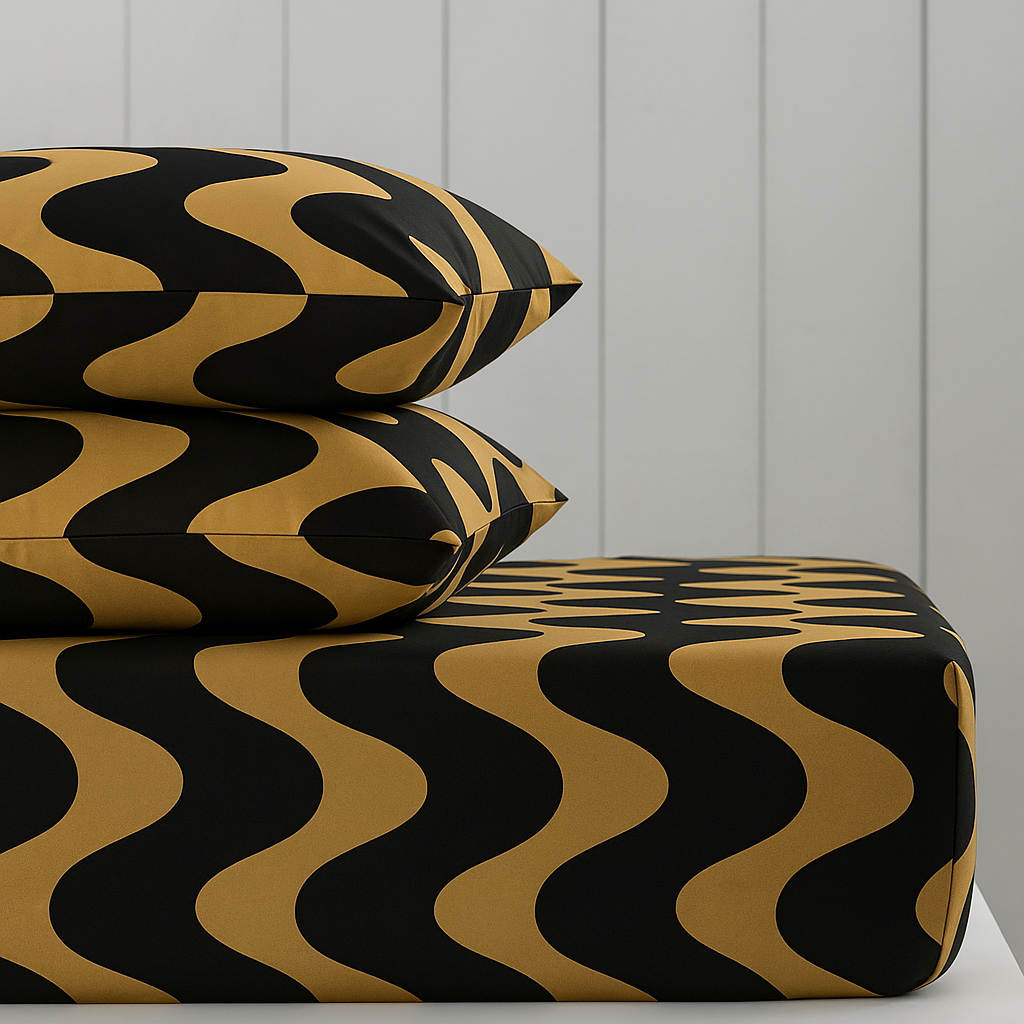 Elevate your bedroom into a sanctuary of opulence with the Black & Gold Premium Fitted Bedsheet Collection by JustCoton. Designed exclusively for those who appreciate refined detail and timeless glamour, this collection brings a bold statement to upscale homes across Dubai, Abu Dhabi, and beyond.