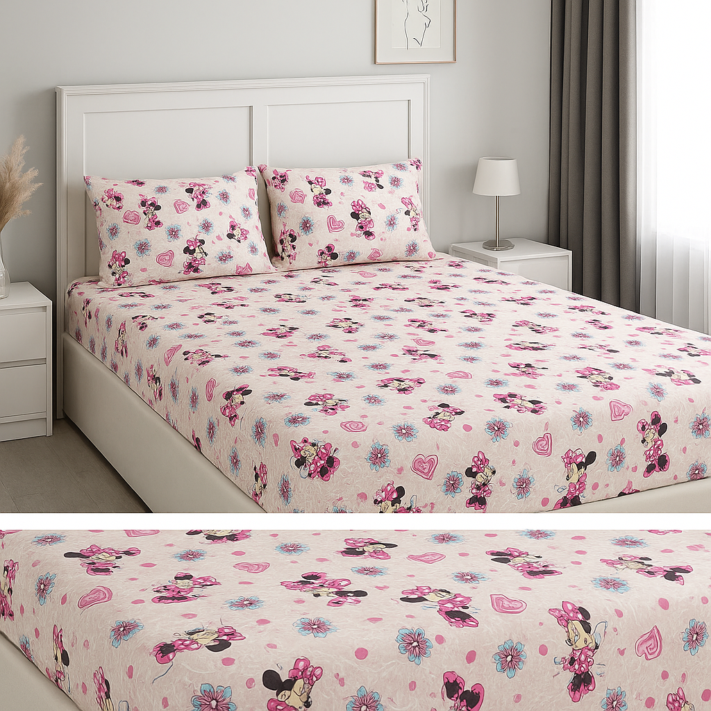This king-size fitted sheet is made from 100% pure cotton with a smooth 300 thread count finish, offering a soft, breathable feel that’s gentle on your child’s skin. The playful Minie Mouse cartoon print adds charm and color to their room, making sleep time more exciting.