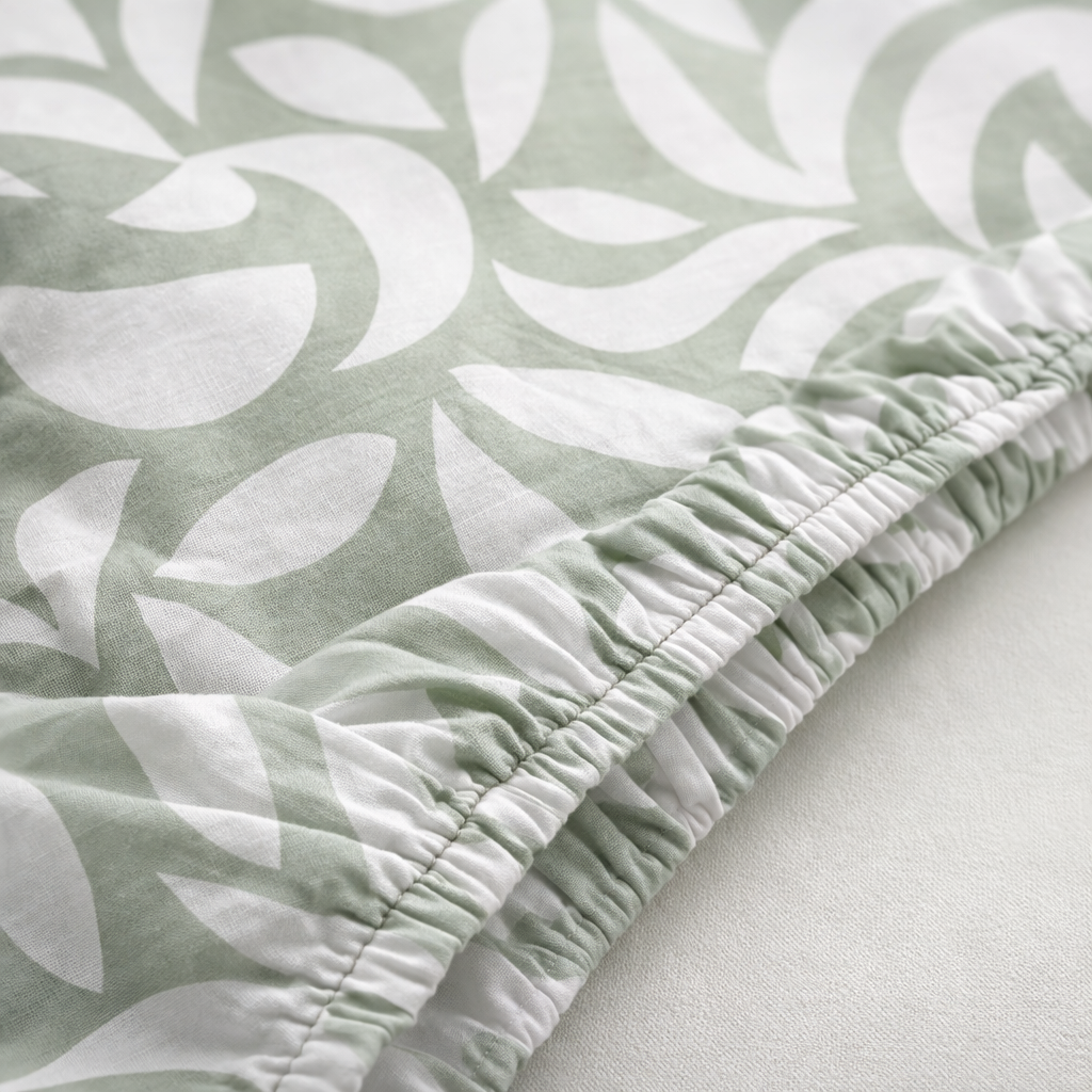 Sage Petals 100% Cotton Fitted Sheet Set – Soft, Breathable Comfort for UAE Homes