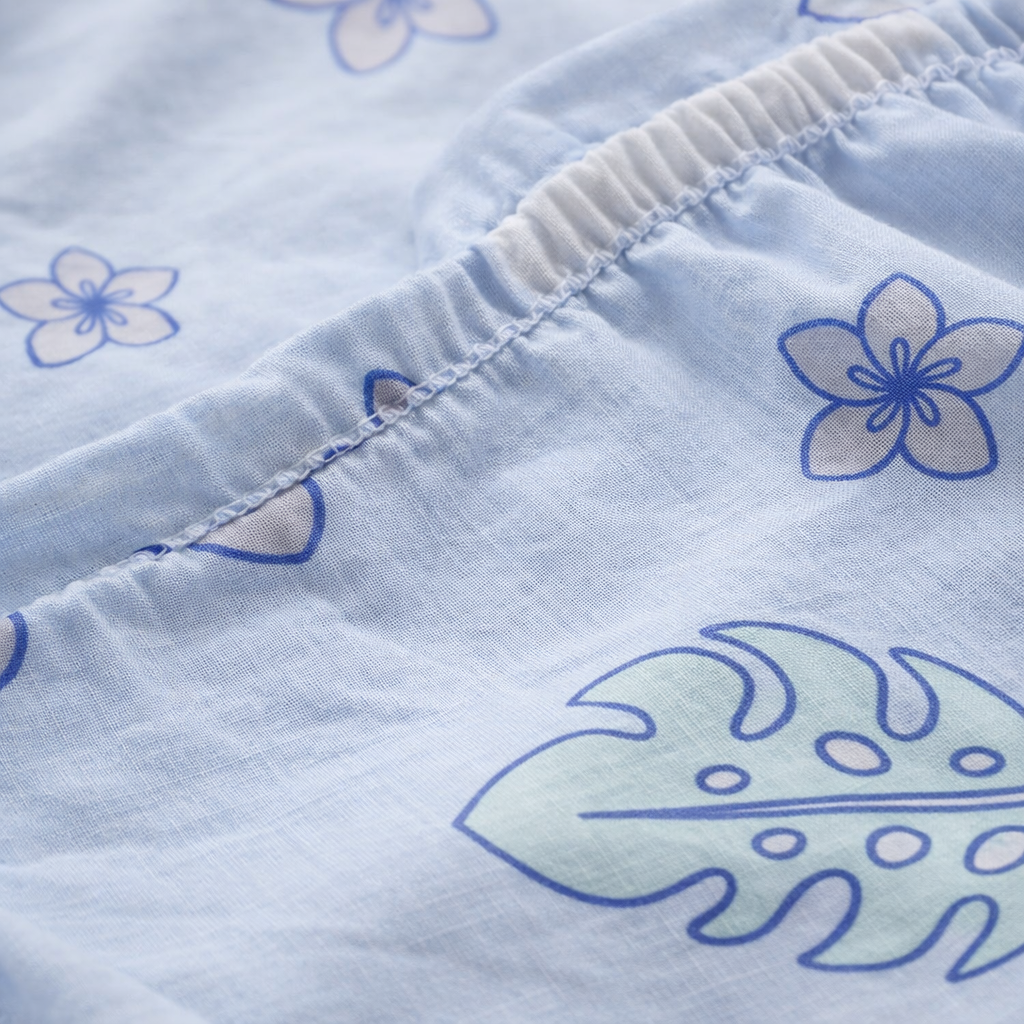 This sky blue cotton fitted bedsheet with floral print is ideal for anyone looking for stylish, comfortable, and well-fitted bedding. A perfect choice for those searching for cotton fitted bedsheets in King and Super King sizes in the UAE.
