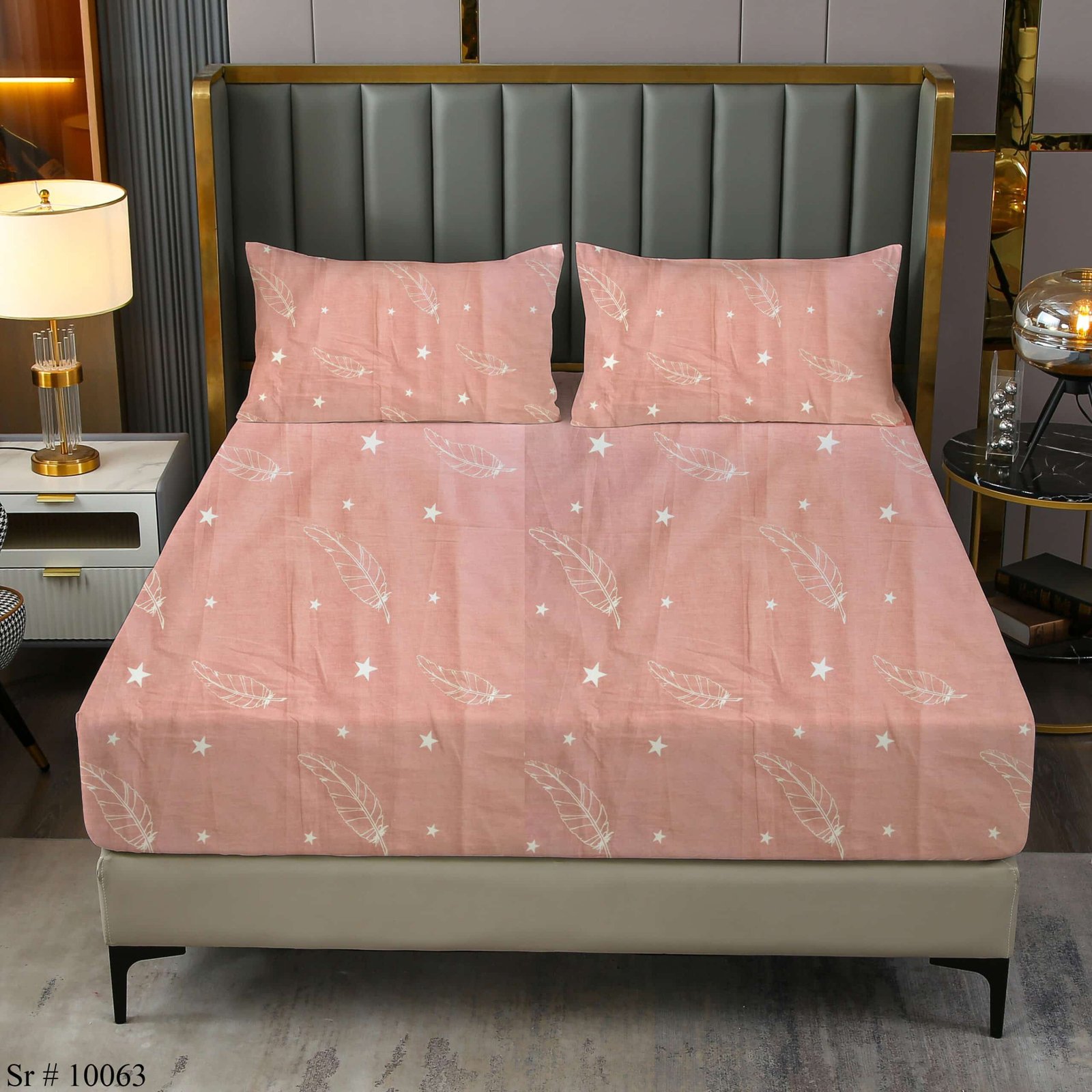 Feel The Luxury! Our Tea Pink Feather 100% Cotton Fitted Sheet Set Boasts 450TC Softness. Perfect For A Stylish Bedroom In The UAE. Buy Now!